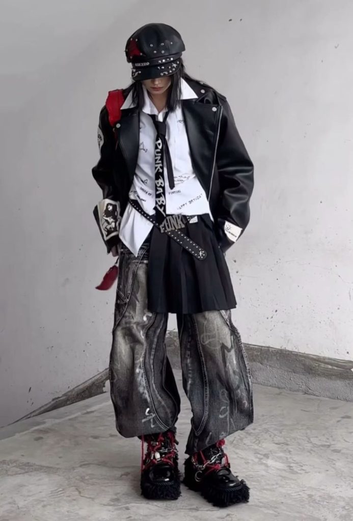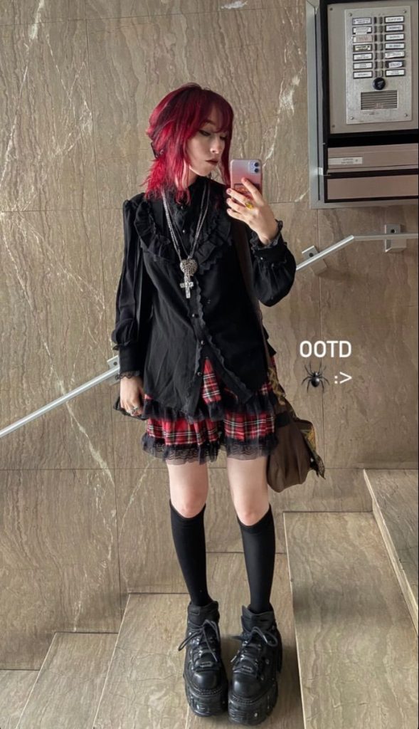 Fortement influencé par le punk et le goth occidentaux, mais réinterprété à la japonaise avec plus de détails, de romantisme et parfois des touches traditionnelles. C’est une façon d’exprimer une identité rebelle dans une société très codifiée.