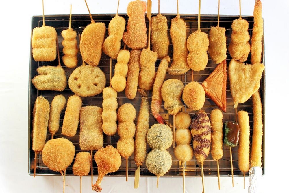 Des brochettes de viande, légumes ou fromages panés et frits.