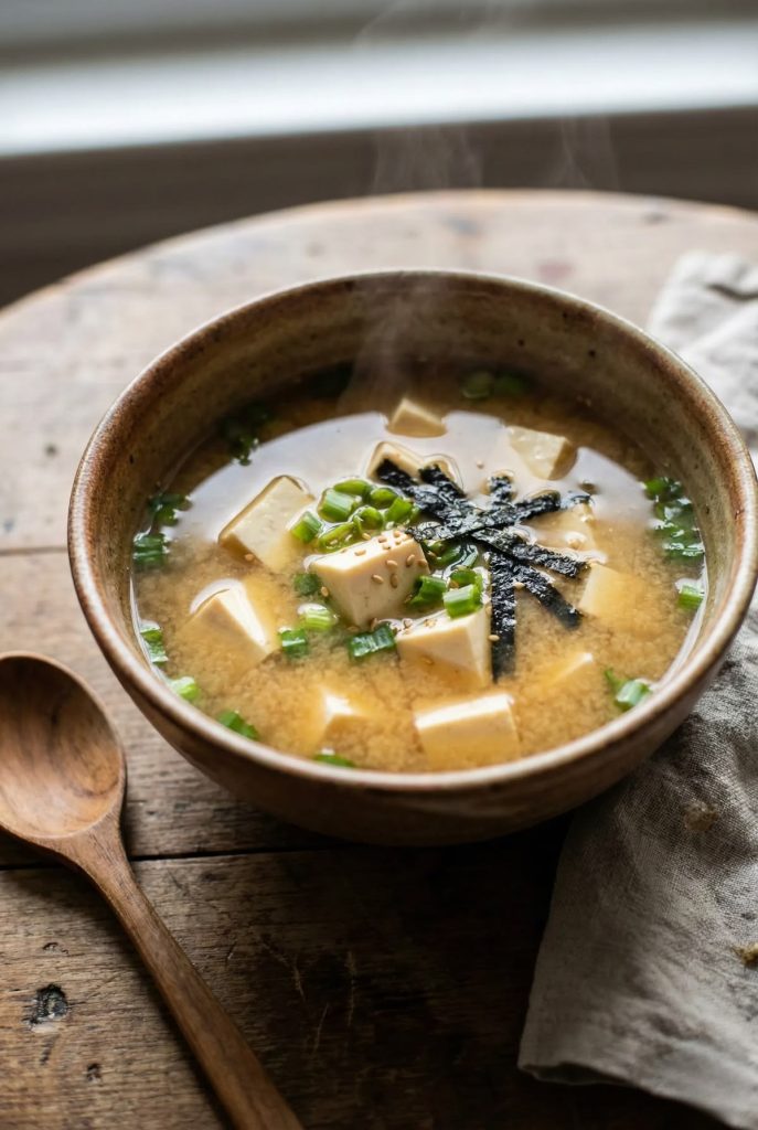 Origine :Époque Heian, dérivée de la soupe de moines bouddhistes. Accompagne presque tous les repas.