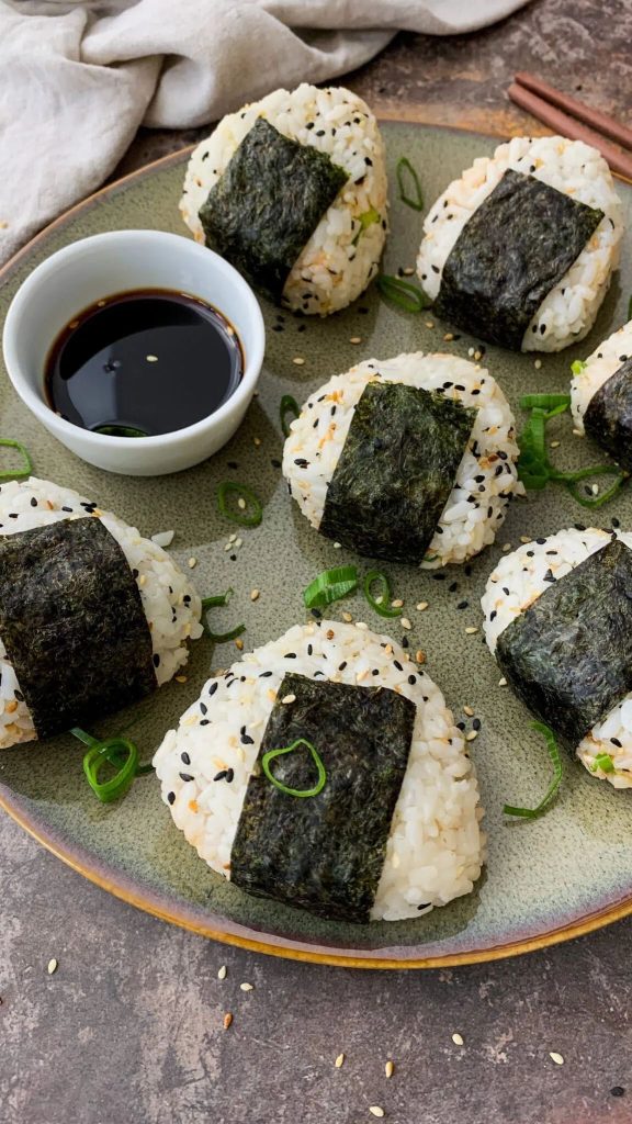 Une boulette de riz (souvent triangulaire ou ronde), parfois garnie et entourée d’algue Nori.